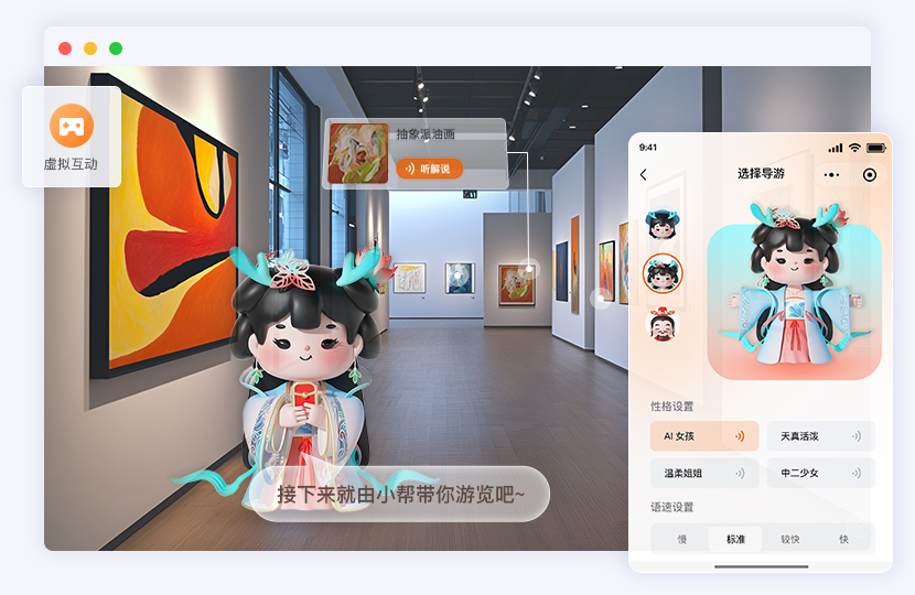 通过3D数字人形象为游客提供自动触发、多语言、可互动的智能讲解服务,让导览更生动有趣。支持数字人形象定制、卡通IP建模。