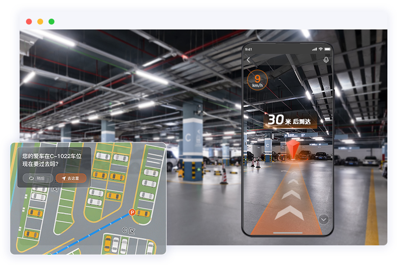 基于蓝牙定位,调取手机摄像头画面,叠加导航路线箭头,为用户提供真实场景的沉浸式导航。
