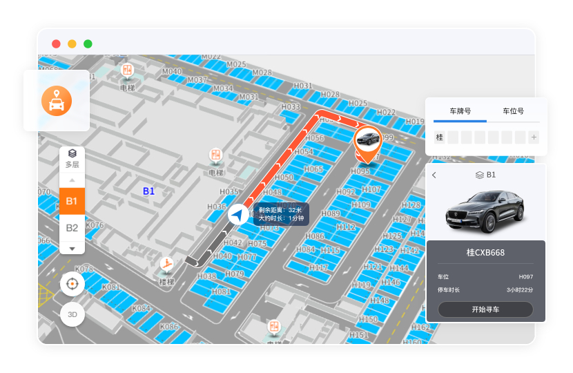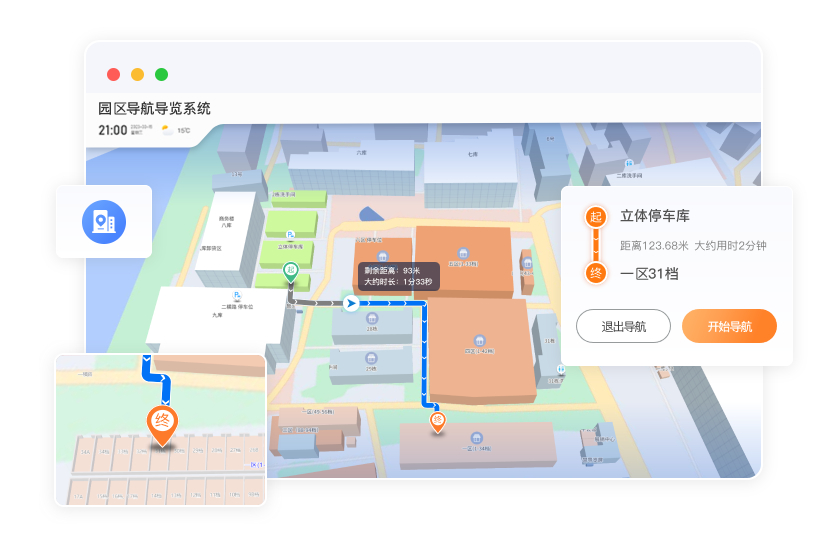 为访客和内部人员提供实时步行路线指引,同时为车辆规划专属行驶路线,避开禁行或限行区域。