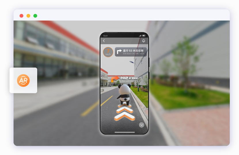 通过手机摄像头识别真实场景,在实景画面上叠加AR数字人行进箭头与距离提示,实现直观的立体方向指引。