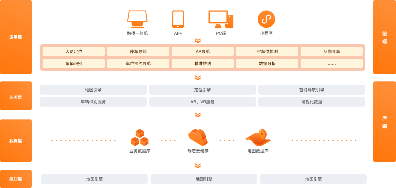 维小帮室内停车场解决方案为解决场景内用户的用车需求,定制专属停车场地图,将iBeacon定位技术与摄像识别技术相结合,实现引导停车、反向寻车、线上缴费、