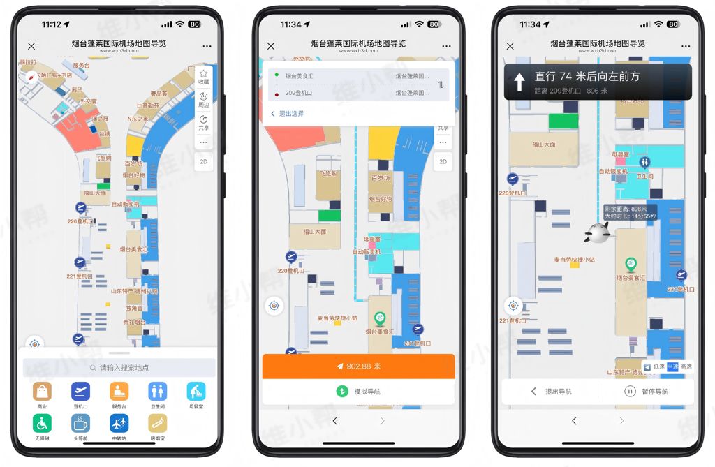 烟台蓬莱机场内部结构多样,包含多层建筑、众多通道、自动扶梯和电梯,功能区域分布广泛,出入口较多,旅客在寻找值机柜台、登机口、卫生间等地点时容易迷失方向。