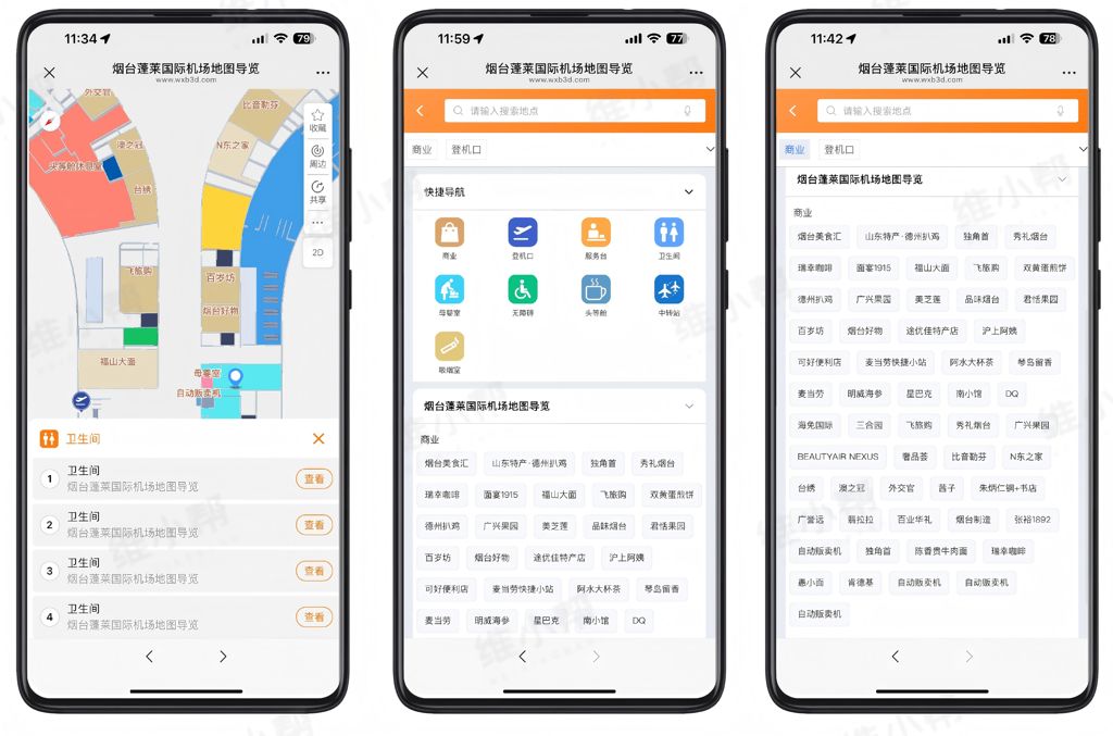 对机场卫生间等基础设施专门标注优化,以醒目标识显示在电子地图上,旅客点击图标即获最短路线指引,快速满足基本需求。