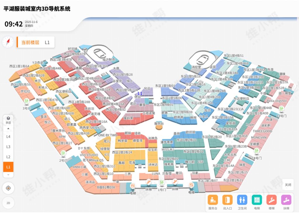 平湖服装城涵盖多层建筑,各楼层按服装品类细分区域,且商户密集、通道交错,加之部分采购商对市场布局不熟悉,常出现 “找品类耗时久、找特定商户绕路” 的问题,尤其影响批发采购的效率。