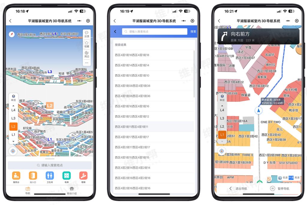 针对平湖服装城的专业市场痛点,广西维构网络科技有限公司基于双方项目合同,量身打造3D 导航导览系统解决方案,核心功能围绕 “精准定位、高效导航、信息整合” 展开: