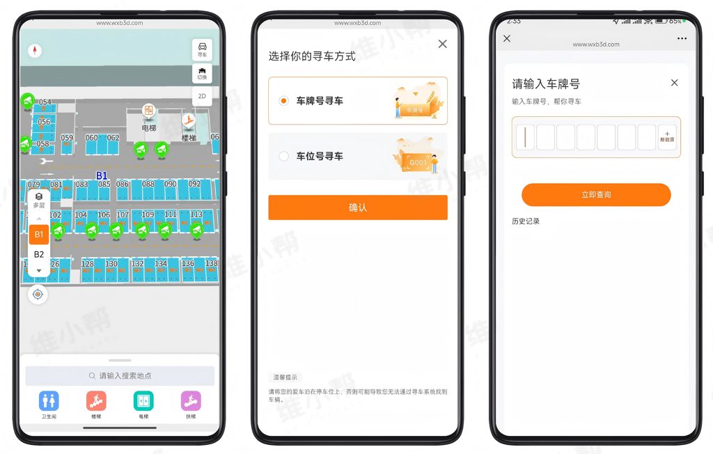 提供车牌号输入、车位号输入等多种反向寻车方式,可快速定位车辆在2800个车位中的具体位置,并自动规划最优寻车路线。彻底解决传统寻车需步行排查的问题,将平均寻车耗时从20分钟以上缩短至3分钟内,大幅提升效率。