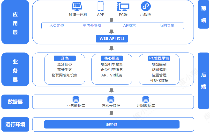 1.室内外一体化导航技术:室外采用 GPS 实现 5-10 米精度定位,室内部署蓝牙 iBeacon 设备补充信号,通过边缘计算实现两种信号无缝切换,定位精度可达 1-3 米,解决复杂空间定位盲区问题。
