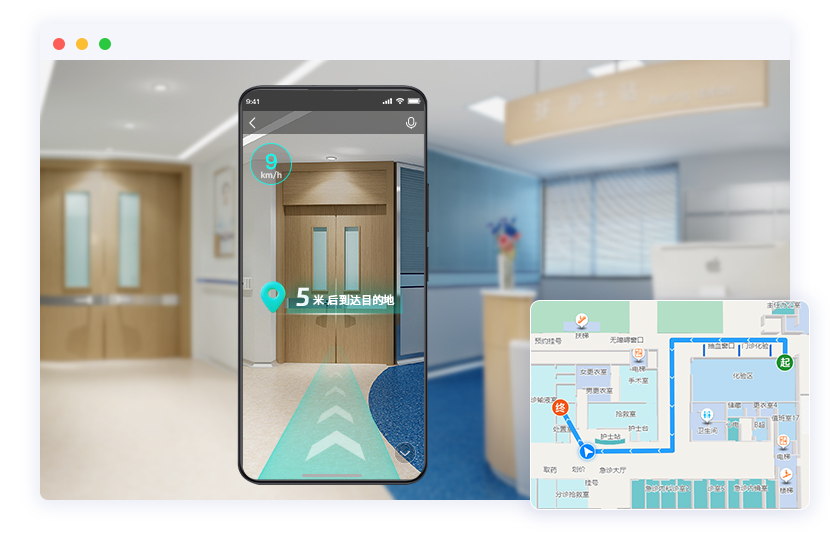 基于蓝牙定位,调取手机摄像头画面,叠加导航路线箭头,为用户提供真实场景的沉浸式导航。